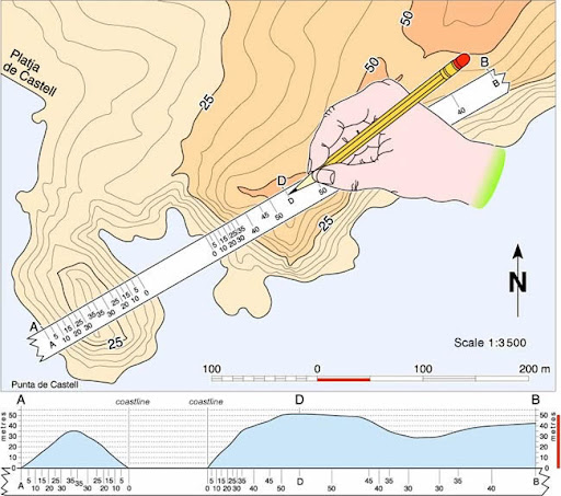 - Desniveles acumulados: Identifica los metros de ascenso (positivo) y descenso (negativo) sumando las curvas de nivel, teniendo en cuenta la equidistancia (generalmente 10 m en mapas 1:25.000).