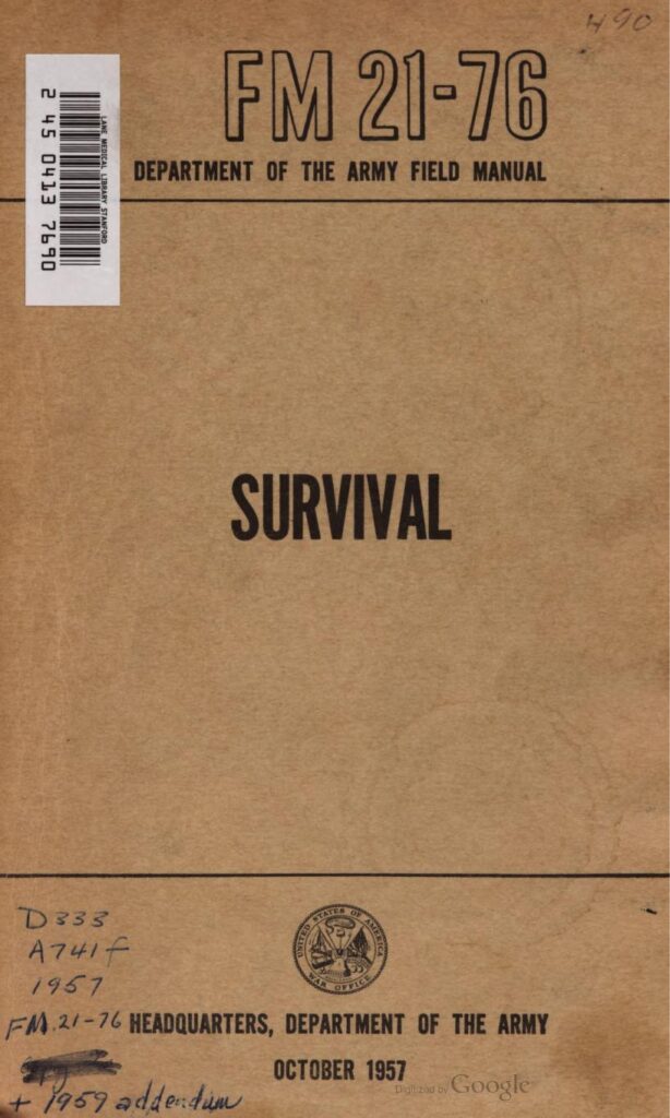 Uno de los textos más influyentes en la era moderna es el FM 21-76: Survival Manual, publicado por el Ejército de los Estados Unidos en 1957. Este manual fue desarrollado para proporcionar a los soldados las herramientas necesarias para sobrevivir en condiciones extremas, como conflictos armados o entornos hostiles. Se enfoca en una amplia gama de técnicas fundamentales, incluyendo la búsqueda y purificación de agua, la identificación de alimentos comestibles en la naturaleza, la construcción de refugios y la orientación sin herramientas modernas.