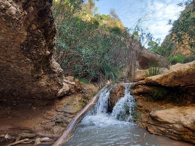 En medio de esta aridez, usted caminará con su mochila con el calor abrasador y el viento seco acariciando su rostro mientras se adentra en el oasis. El Río Chícamo es el principal protagonista, un pequeño curso de agua que, milagrosamente, es permanente y crea un auténtico oasis en medio de la sequedad entre Fortuna y Abanilla.