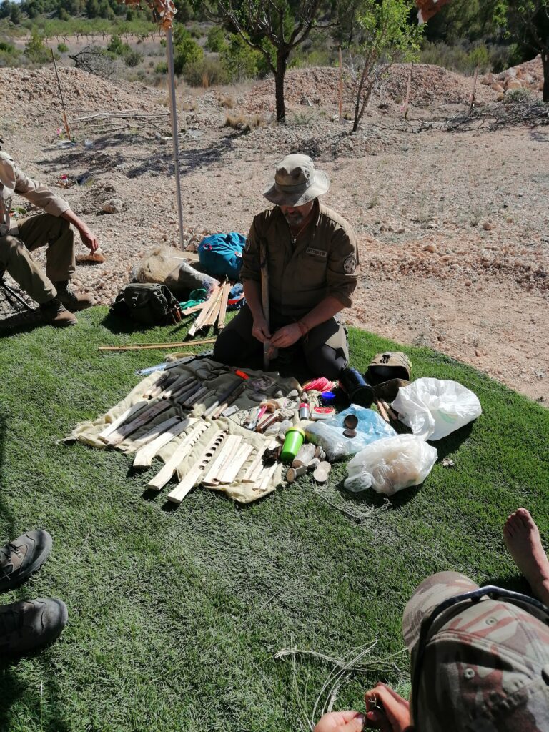 - Domingo 9 de Noviembre (Consolidación y Cierre): El último día se centra en habilidades avanzadas y la logística: Fabricación de Armas Primitivas (como azagayas) y técnicas de caza; el concepto de EDC (Every Day Carry); y la legislación relevante. Finalmente, el curso culmina con la entrega de diplomas.