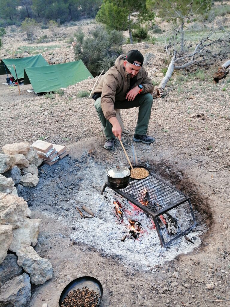 Desde el punto de encuentro en el Centro Social de Las Casicas, los alumnos comienzan su aventura con un rucking (trekking) de aproximadamente 4 kilómetros hacia el campamento. Este primer contacto con el terreno ya sirve como una lección sobre progresión en terrenos variados y medidas de seguridad. Este ambiente semiárido no solo expone a los elementos, sino que nos obliga a interactuar con un medio natural que, si bien es cautivador, es impredecible.