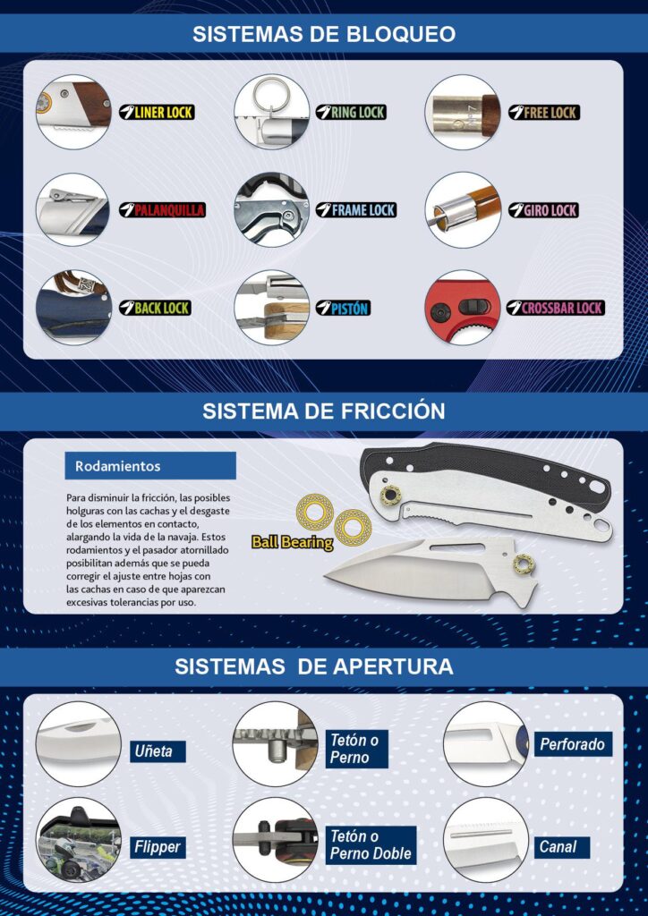 - Las Automáticas: Cualquier navaja que se abra con un muelle o mecanismo similar al pulsar un botón. Ilegal.