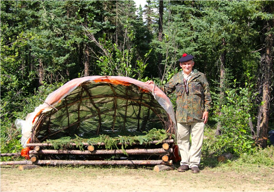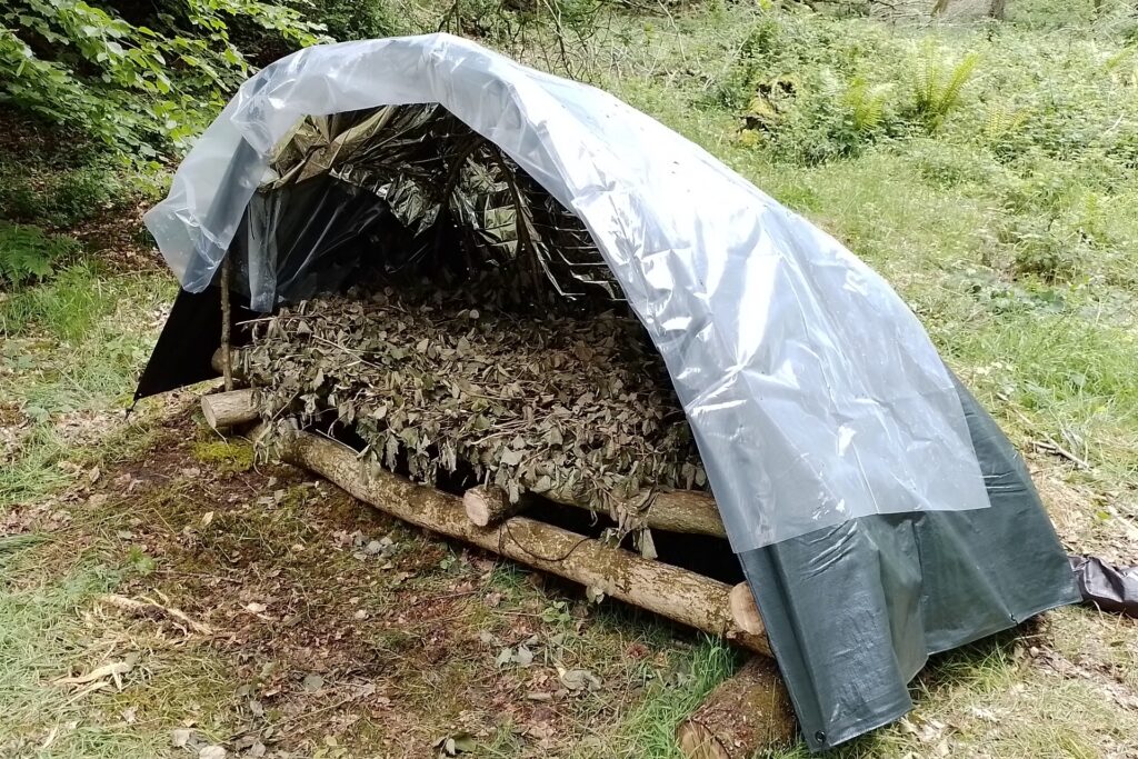 3. El verdadero ladrón de calor: Tu enemigo #1 es el suelo, no el aire. La mayor pérdida de calor en un refugio no es por el viento, sino por conducción directa con el suelo. El suelo actúa como un «sumidero térmico de capacidad infinita» que succiona el calor corporal sin cesar. Por eso, la parte más crucial de tu refugio es una cama gruesa (de 10 a 15 cm de espesor comprimido) de hojas secas o ramas de pino. Aislarte del suelo es el primer paso. Es por esto que el «Super Shelter» se construye sobre una cama elevada.
