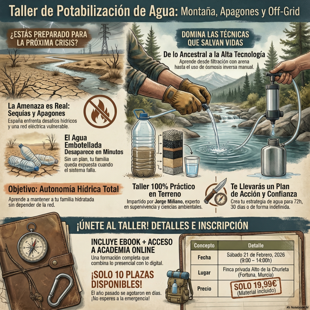 ¿Quieres aprender a preparar y usar un kit real? Únete al Taller de Potabilización de Agua: Montaña, Apagones y Off-Grid el 21 de febrero →