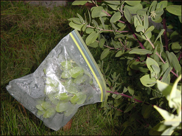 - Se envuelve una rama frondosa o un arbusto pequeño con una bolsa de plástico transparente.